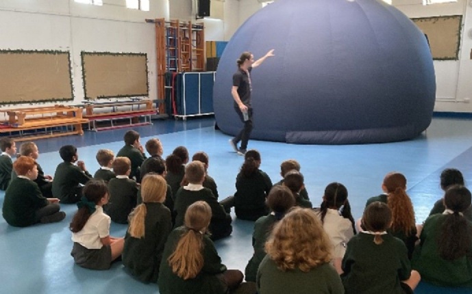 On Monday, Year 5 explored the skies and space inside a Space Dome, led by astronomer Daniel from Science Oxford. Using a range of captivating visuals, he guided them through the Solar System, sharing fascinating details about the Sun, each planet, and distant galaxies beyond. With stunning images from the James Webb Telescope, Daniel sparked discussions about the possibility of extra-terrestrial life and inspired pupils to imagine futures as scientists themselves. The children thoroughly enjoyed this immersive experience, which deepened their understanding of our science topic — and they’ve already voted to book it again next year!