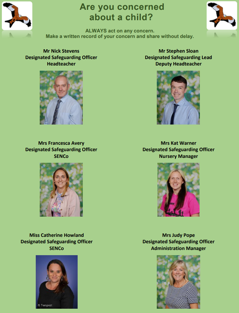We follow procedures exemplified by The Local Safeguarding Children’s Board and the school has a Child Protection Policy (found on Statutory Information page), which is ratified by Governors annually. Our governor with responsibility for safeguarding is Dr Murton.